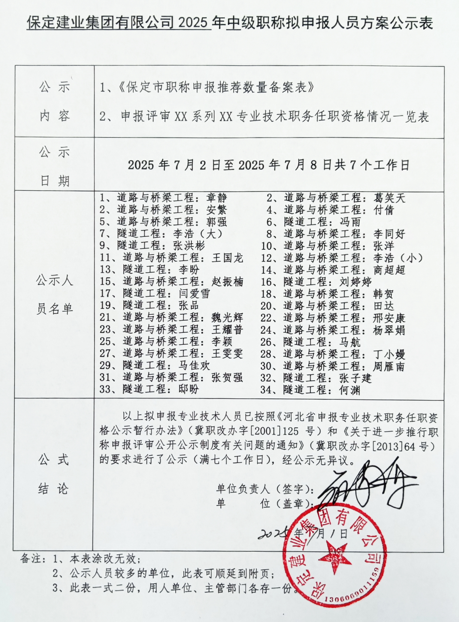 保定建業(yè)集團(tuán)2025年中級職稱擬申報人員公示二