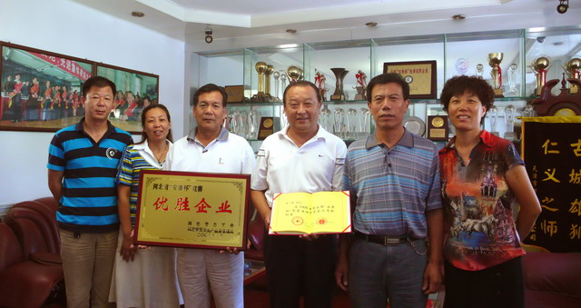 2009年8月12日上午,保定市總工會(huì)有關(guān)領(lǐng)導(dǎo)親臨我集團(tuán)公司,為我集團(tuán)公司頒發(fā)河北省“安康杯”競(jìng)賽活動(dòng)優(yōu)勝企業(yè)獎(jiǎng)牌,為集團(tuán)公司董事長(zhǎng)張?zhí)m柱同志頒發(fā)全國(guó)“安康杯”競(jìng)賽活動(dòng)優(yōu)秀組織者證書(shū)。這是我集團(tuán)公司繼榮獲河北省“AAA級(jí)勞動(dòng)關(guān)系和諧單位”后,獲得的又一殊榮,標(biāo)志著我集團(tuán)公司安全管理工作邁上了新臺(tái)階。