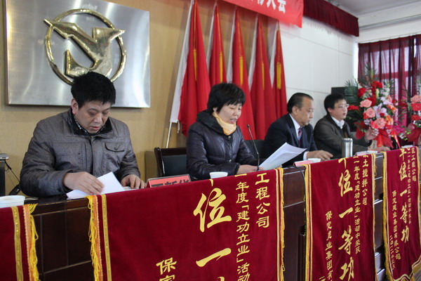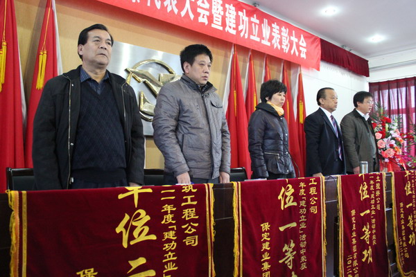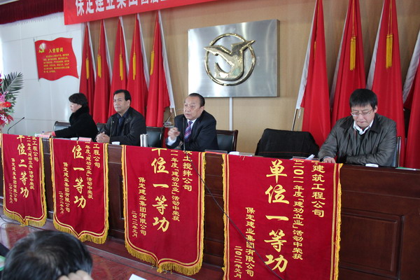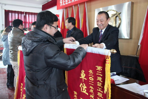 在隨后舉行的二零一一年度集團表彰大會上,由黨委副書記閆雙彥宣讀了“二零一一年度建功立業(yè)表彰決定”,并由集團公司領(lǐng)導(dǎo)對獲獎單位頒發(fā)了錦旗和獎狀。